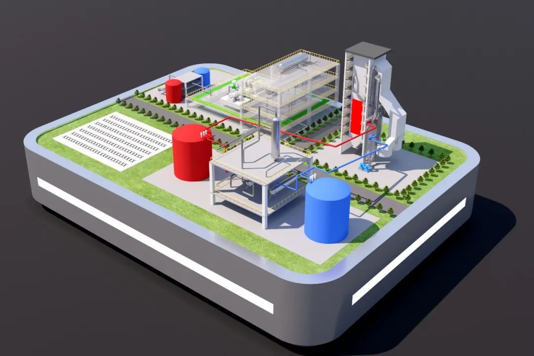 世界首臺(tái)(套)應(yīng)用鍋爐耦合煙氣熔鹽儲(chǔ)能項(xiàng)目——國(guó)能廊坊熱電350兆瓦機(jī)組煙氣熔鹽儲(chǔ)能示范項(xiàng)目?jī)?chǔ)熱系統(tǒng)概念圖。